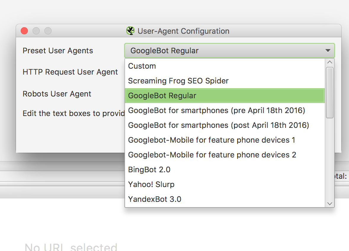 ¿Como configurar o cambiar el user agent en Screaming Frog?